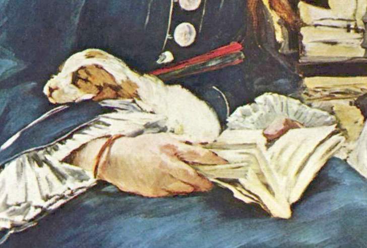 Hostile reactions to his work continued his whole life. In 1874, when Manet exhibited The Railway (widely known as Gare Saint-Lazare), critics said that the figures of Victorine Meurent and the little girl in the painting looked as if they were imprisoned behind bars, and that the puppy Victorine held looked like a rabbit or a seal.