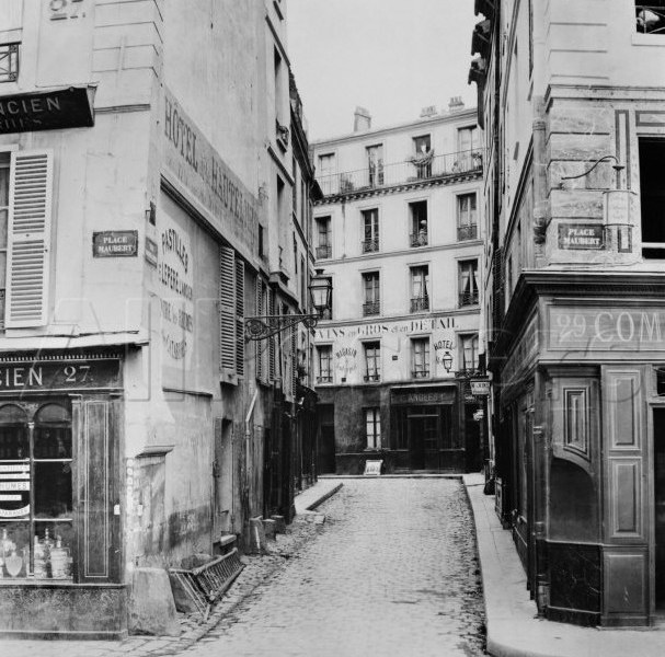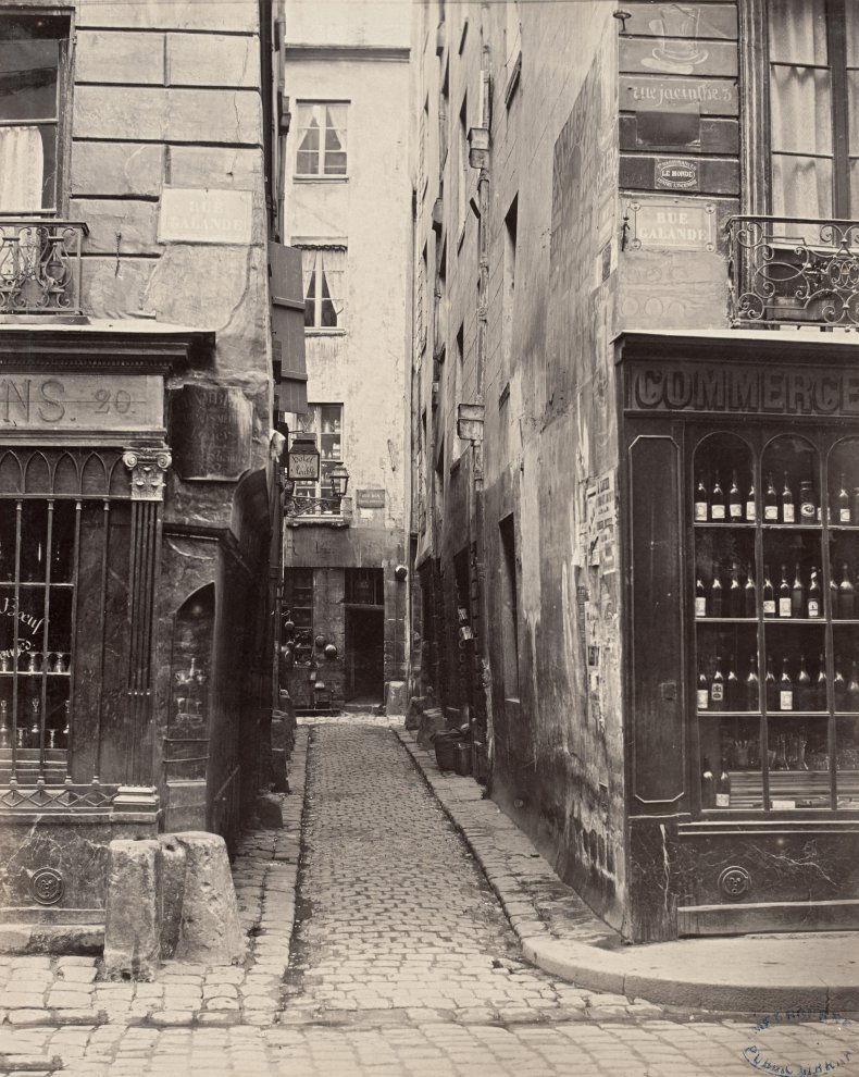 Marville didn’t just allow me to know Victorine’s street, though—his photos revealed her whole quartier to me. Just around the corner from rue Maître Albert was tiny rue Jacinthe, or Hyacinth Street, a street that got destroyed by Haussmann.  A street so narrow it looks more like an alleyway: